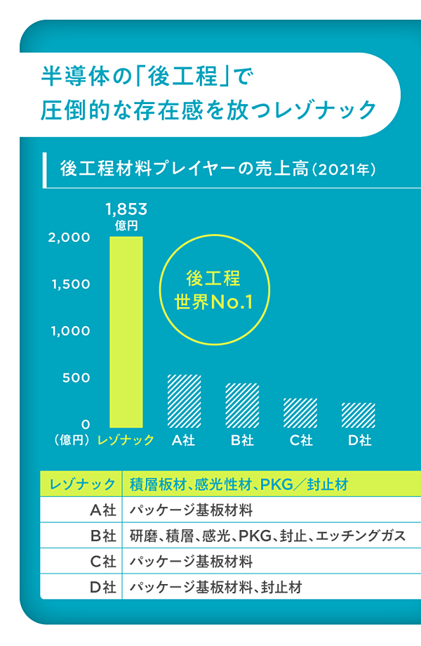 その後工程において強みを持ち、半導体の材料企業として世界で注目される企業がレゾナック・ホールディングスだ。