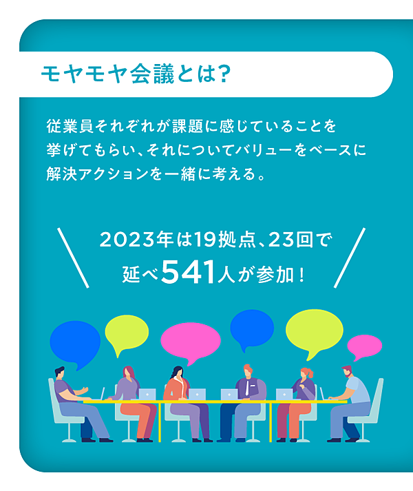 岩盤層に限った話でもなく、誰もがオープンに意見を言い合えるマインドを醸成するために「モヤモヤ会議」という取り組みを実施しています。